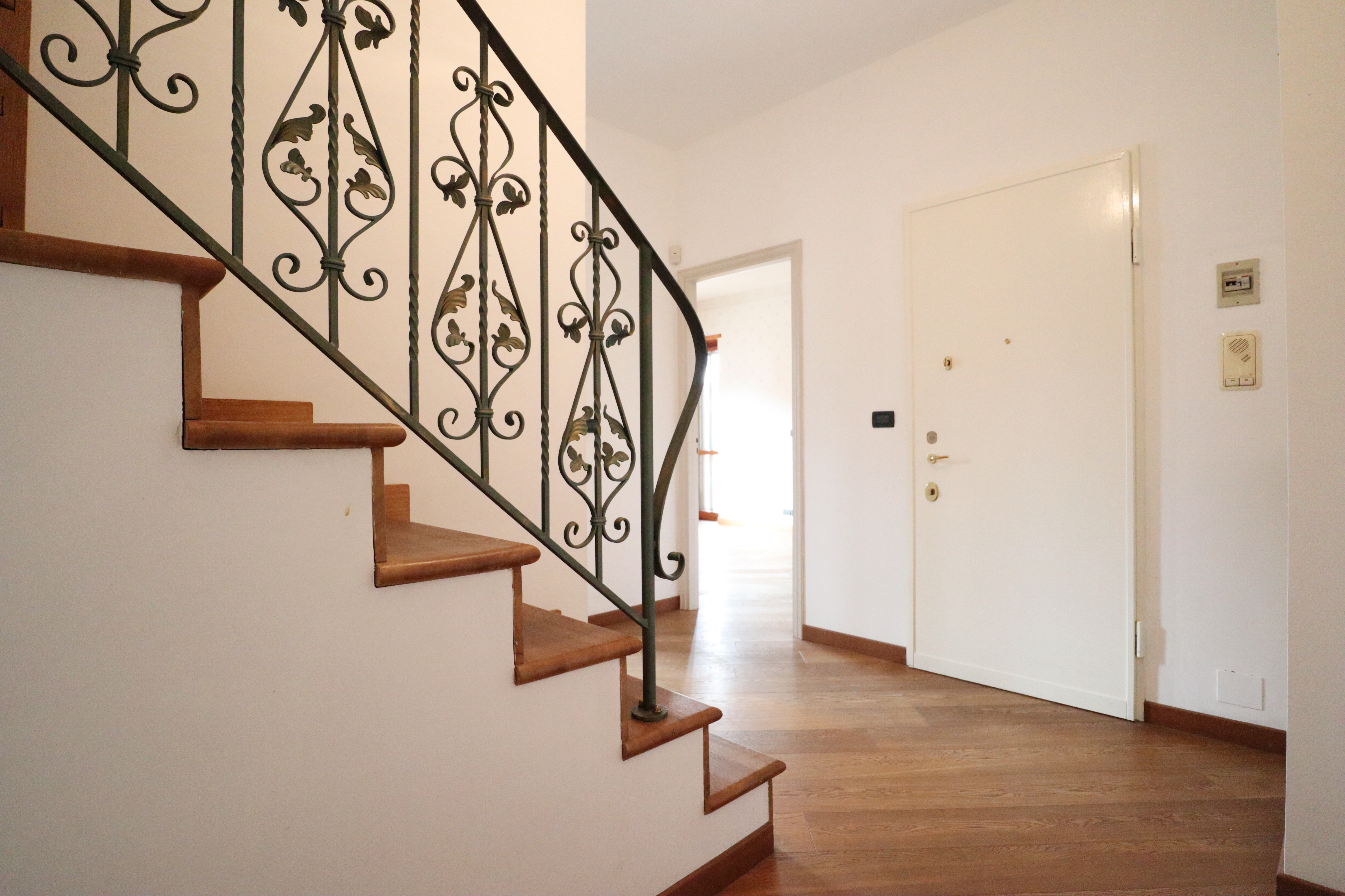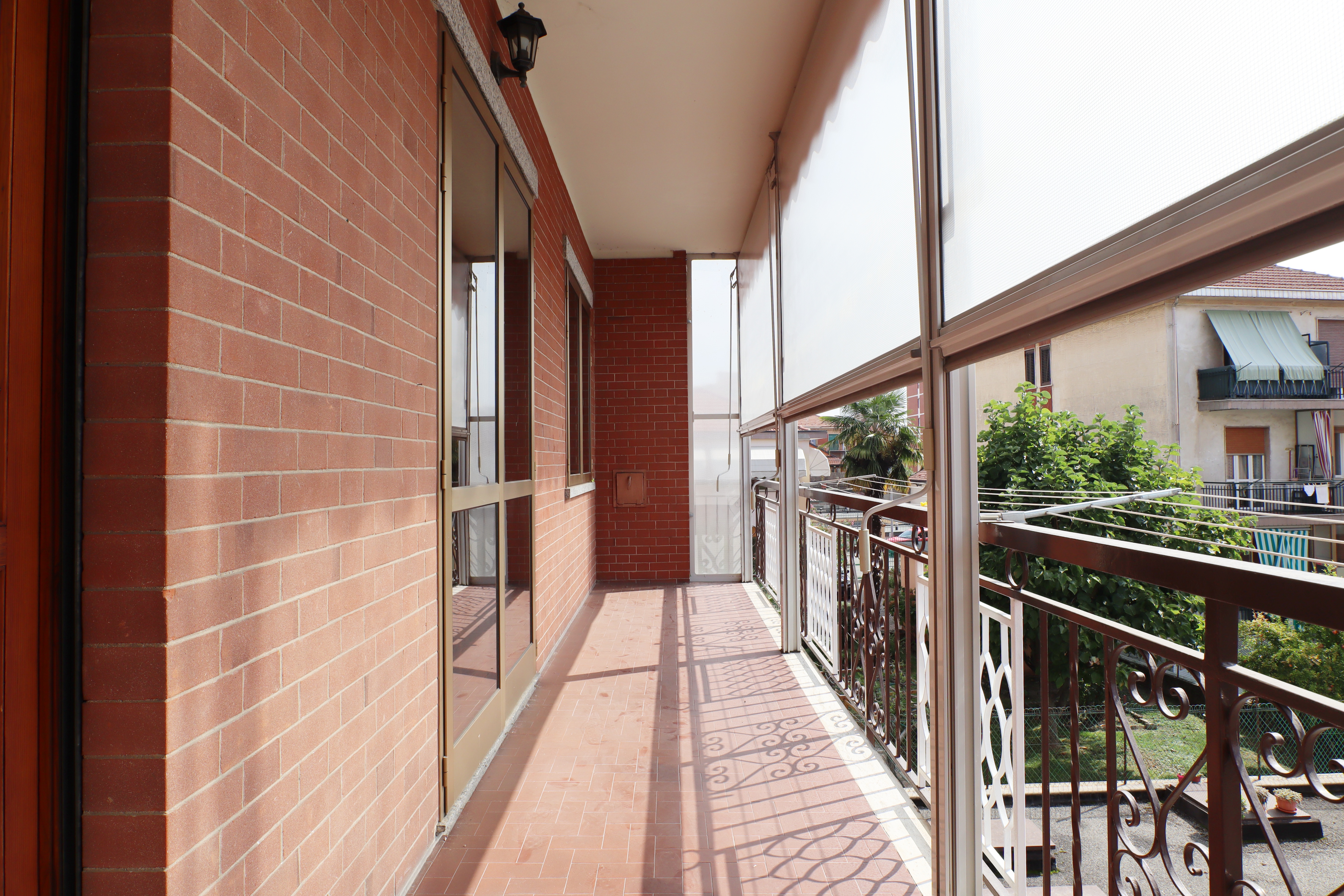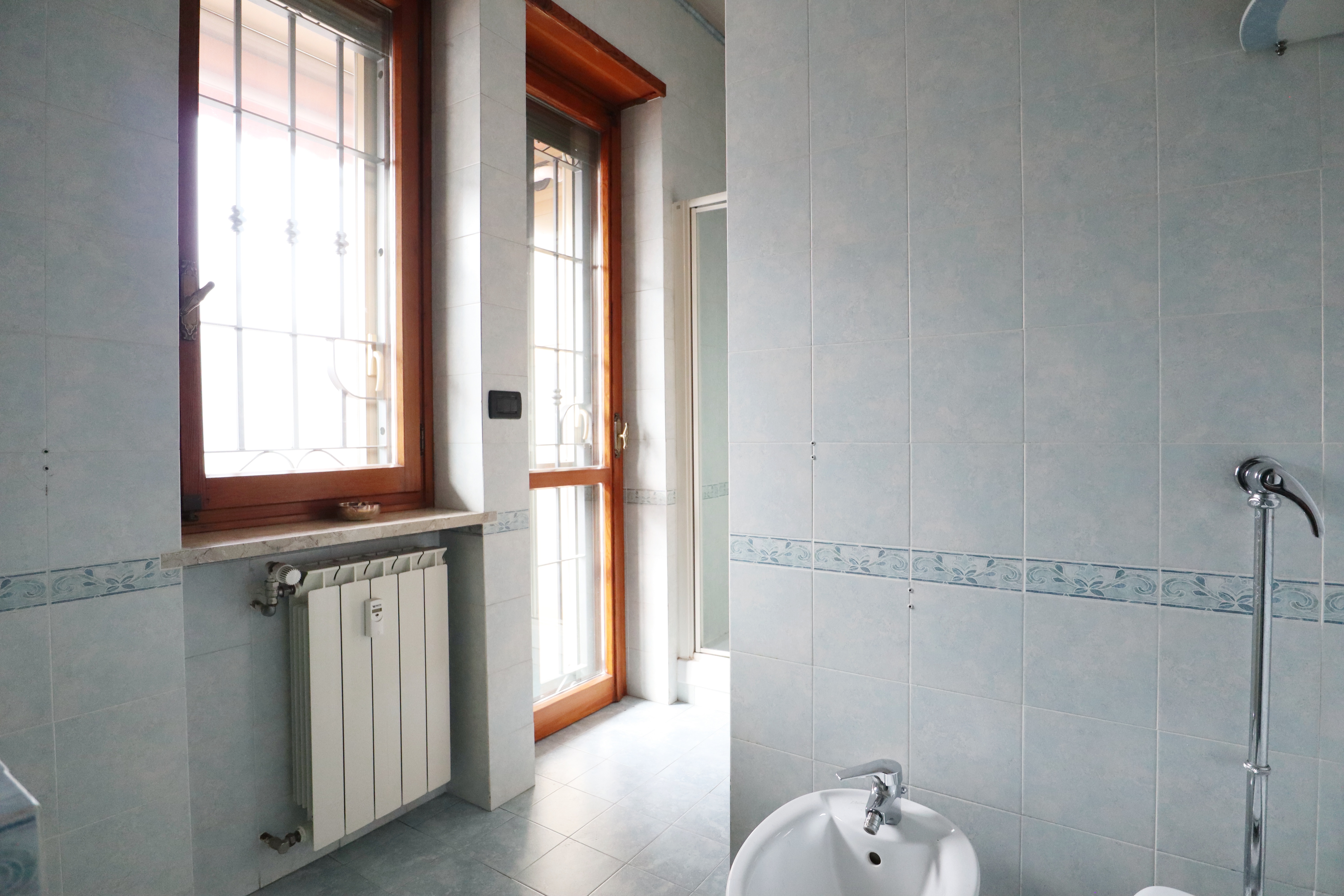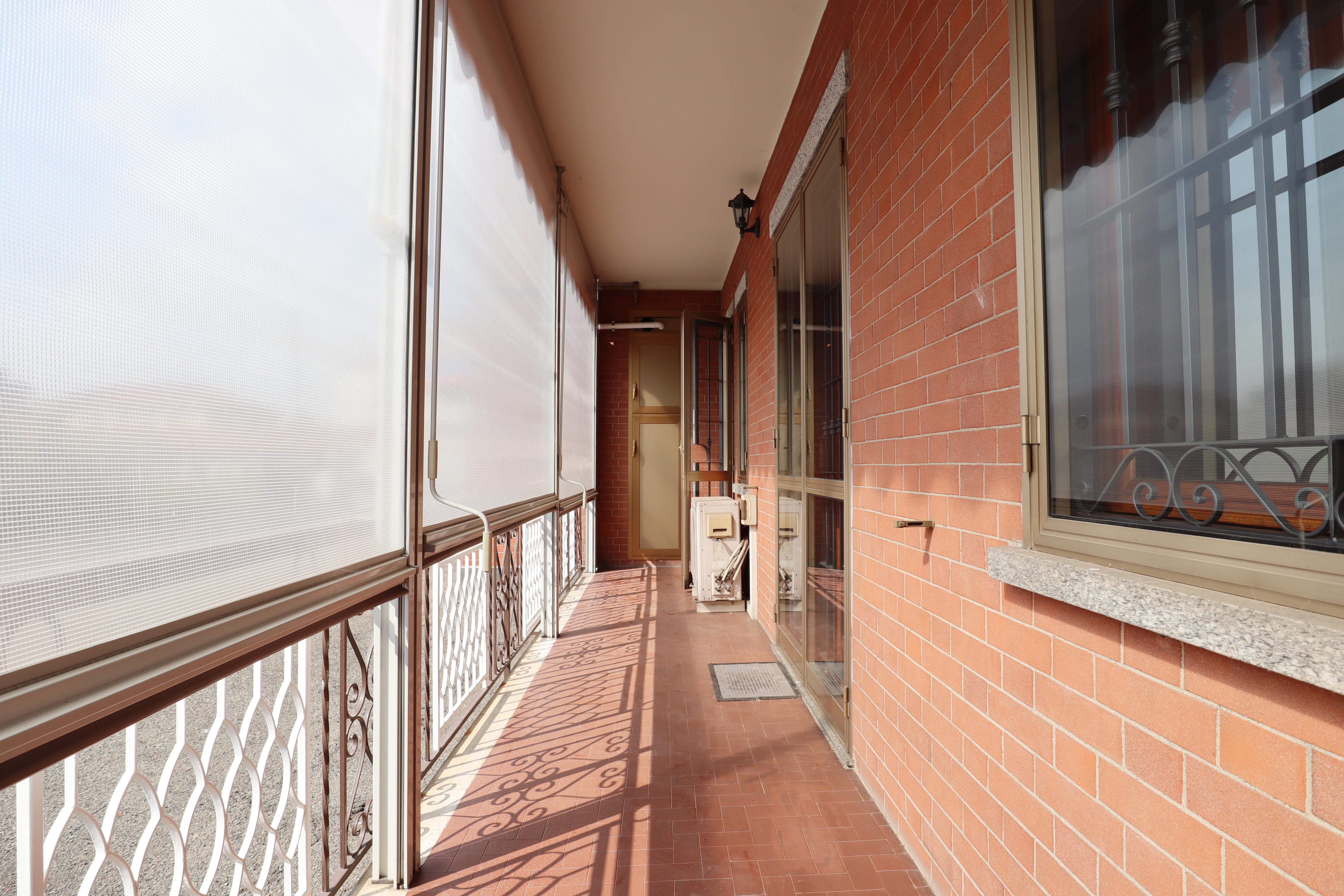 I serramenti sono in legno con doppi vetri, tapparelle elettriche e inferriate. Sui balconi che si affacciano sull’interno cortile sono state installate le tende verande con doppi rulli estate/inverno.