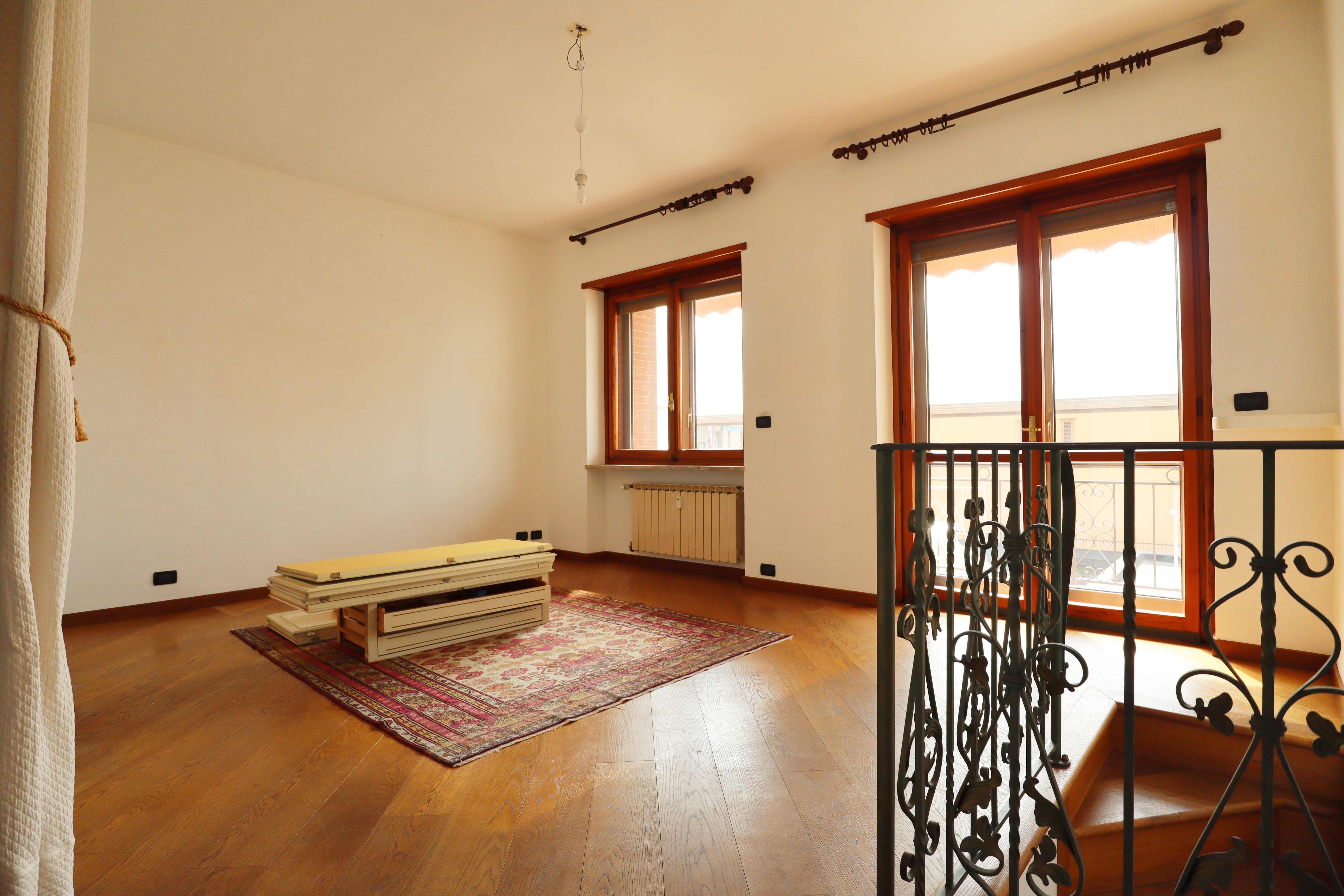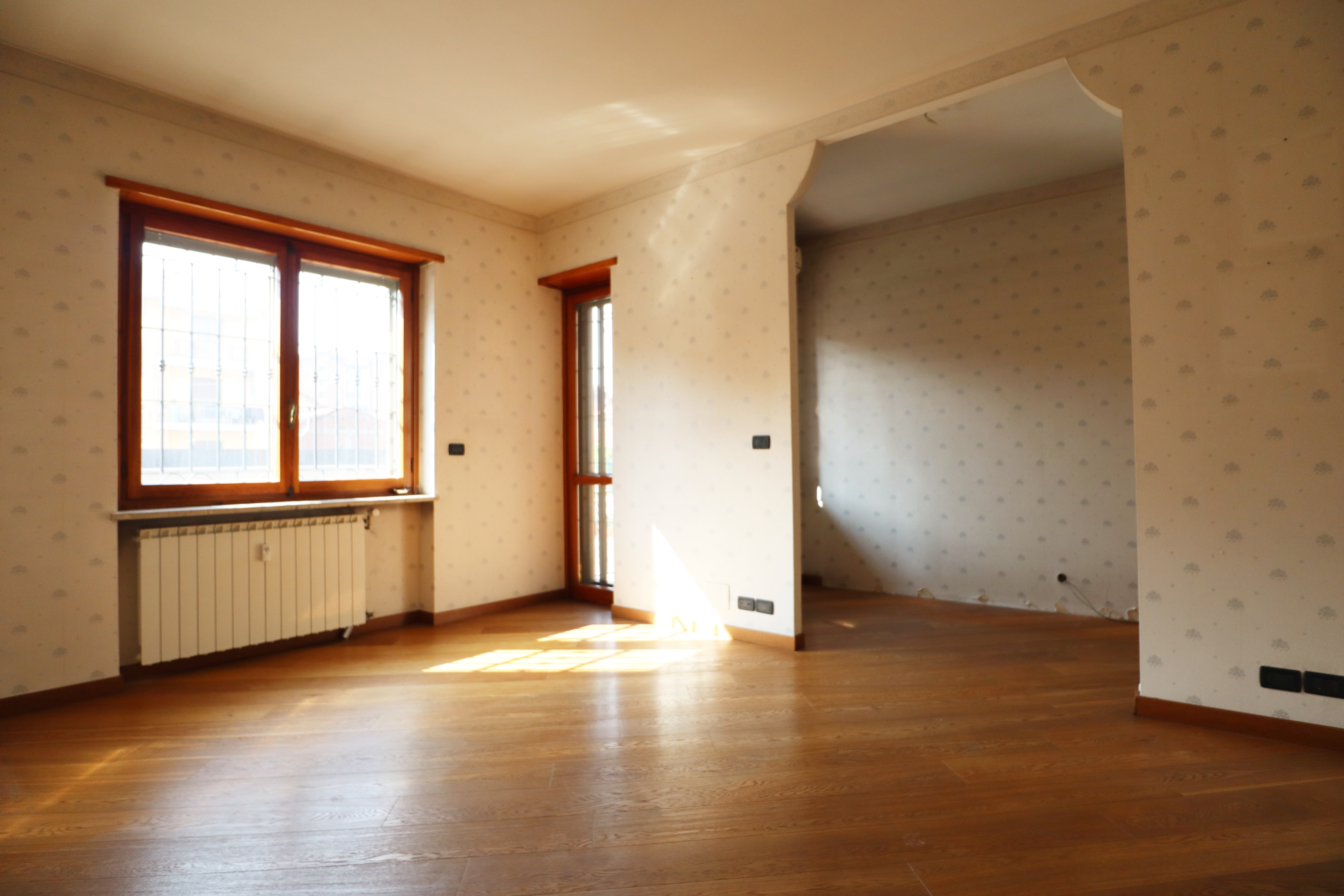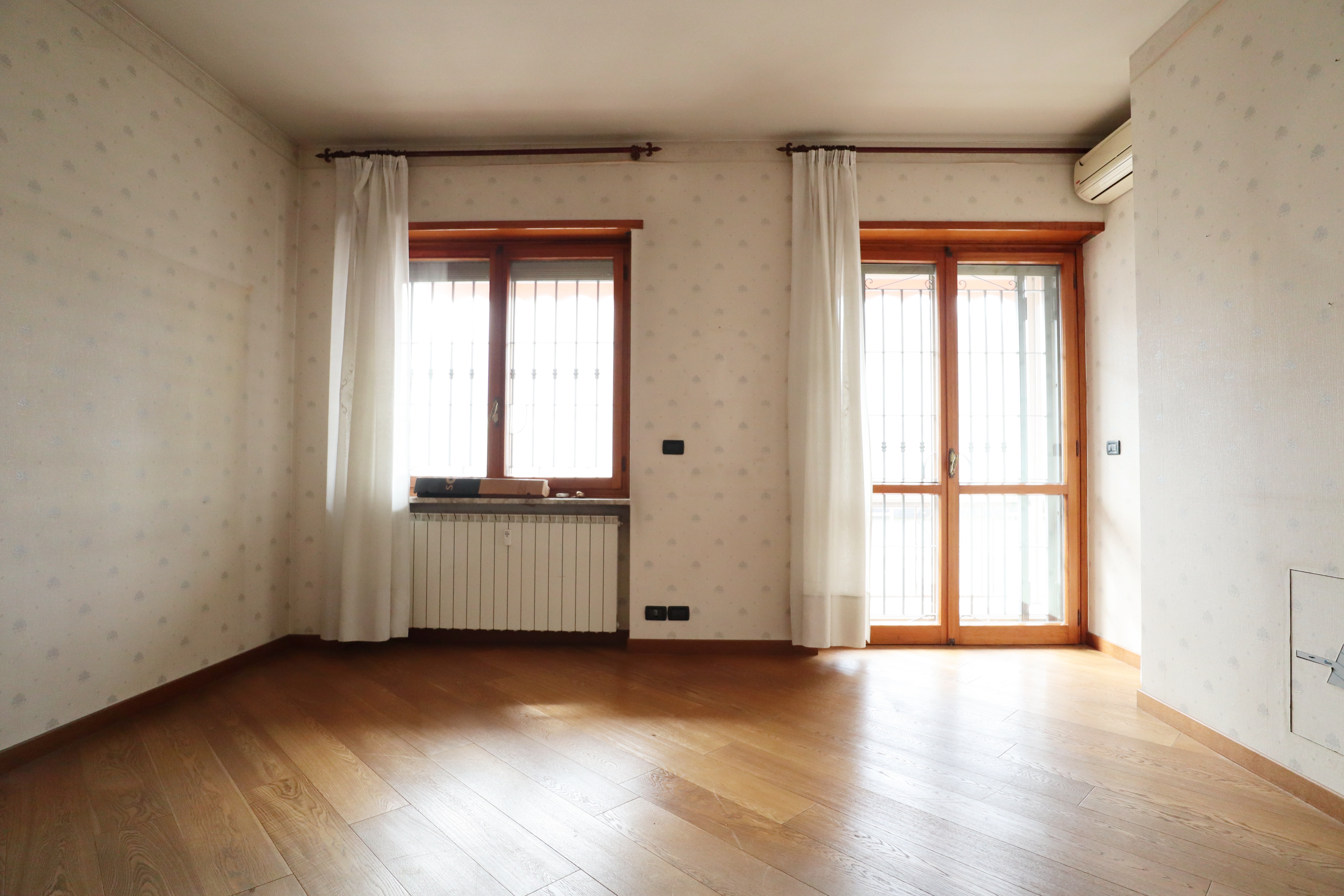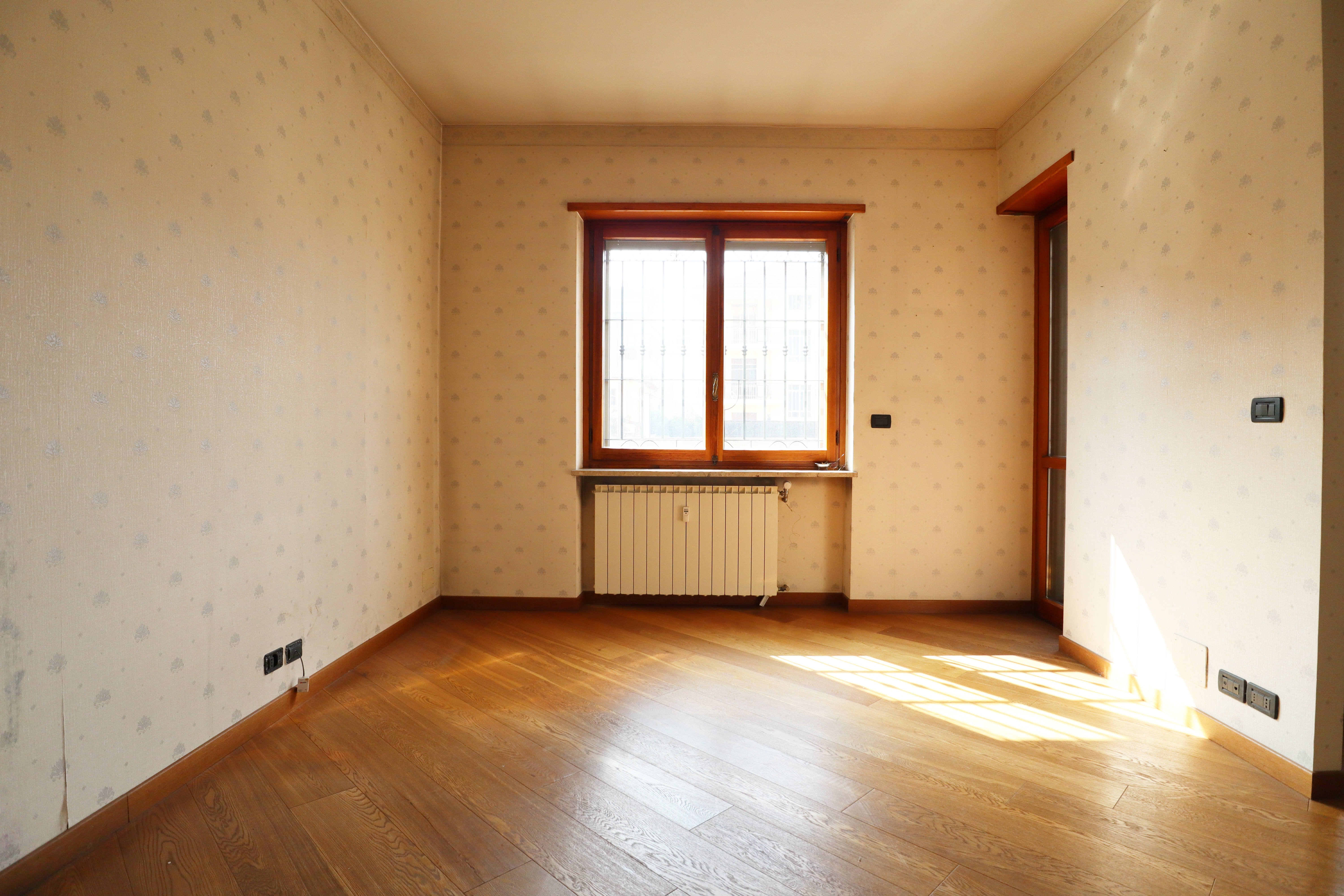 I serramenti sono in legno con doppi vetri, tapparelle elettriche e inferriate. Sui balconi che si affacciano sull’interno cortile sono state installate le tende verande con doppi rulli estate/inverno.