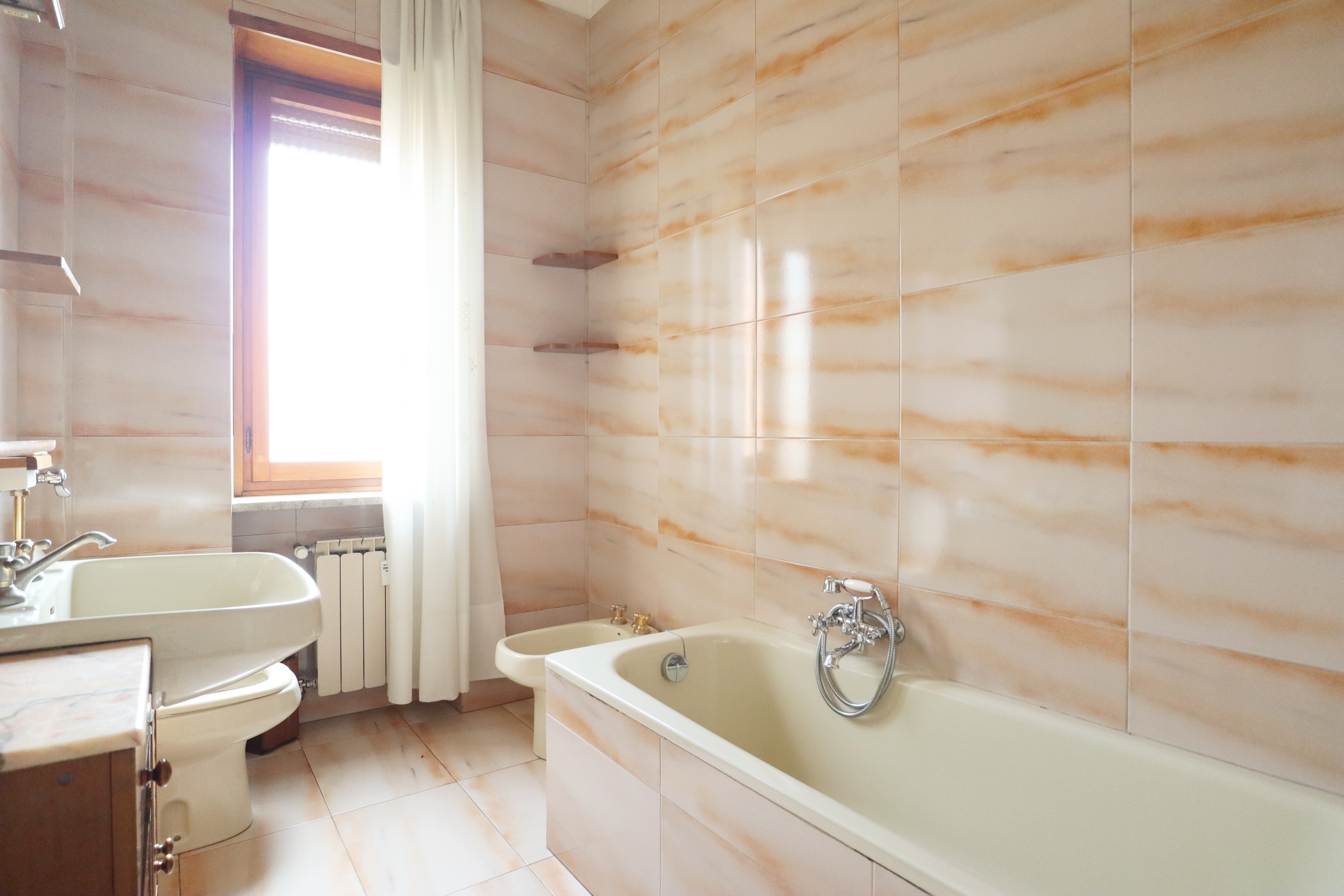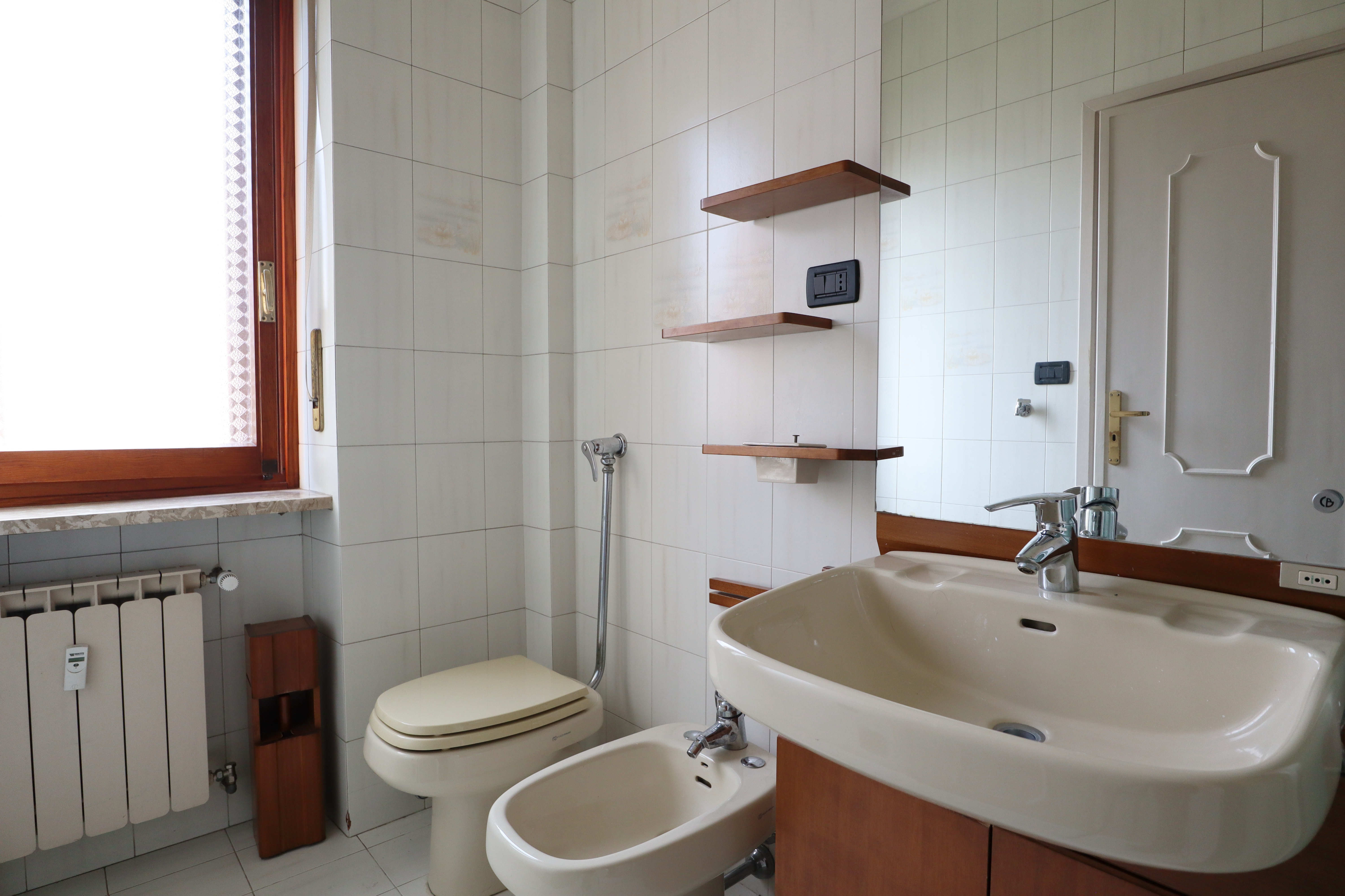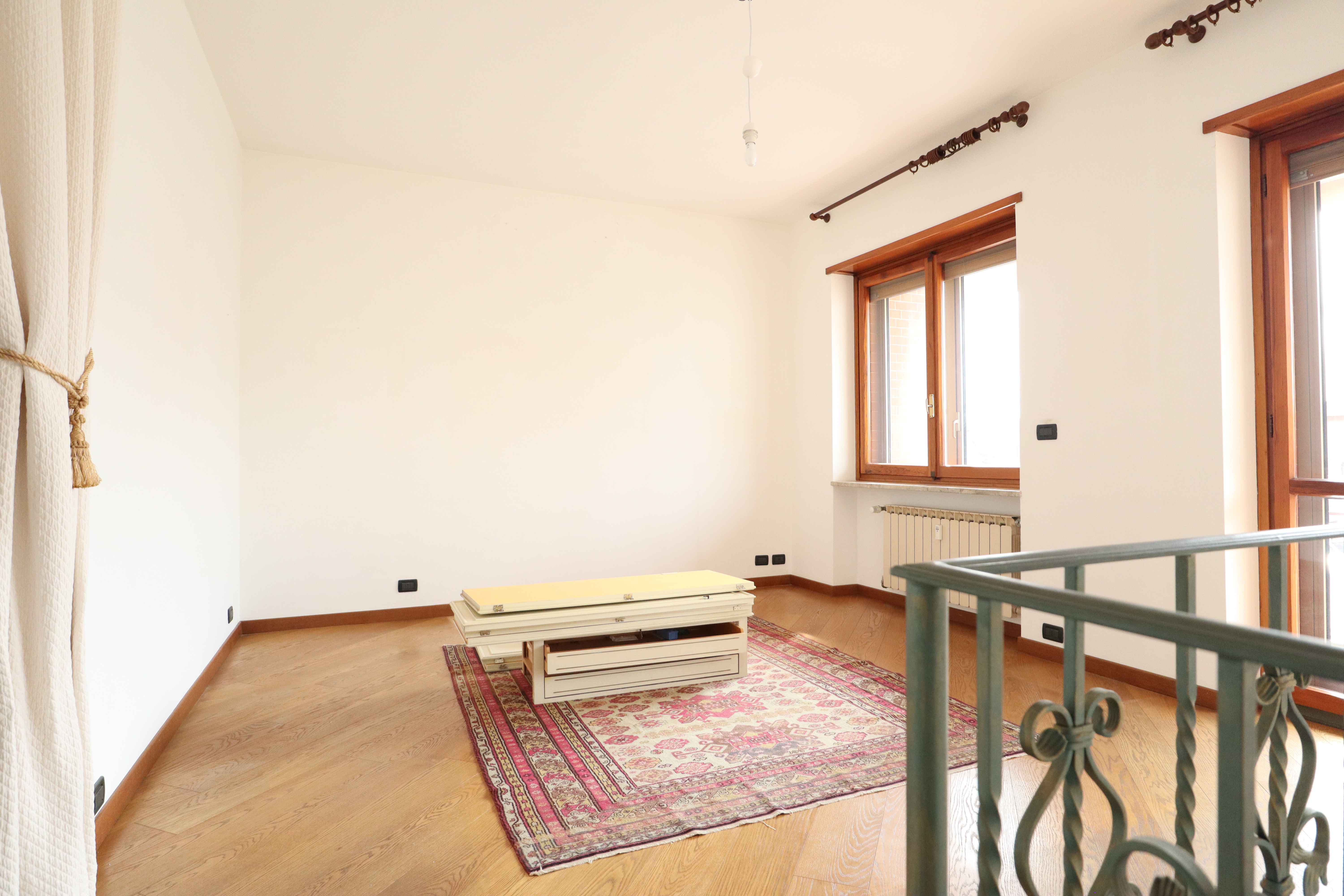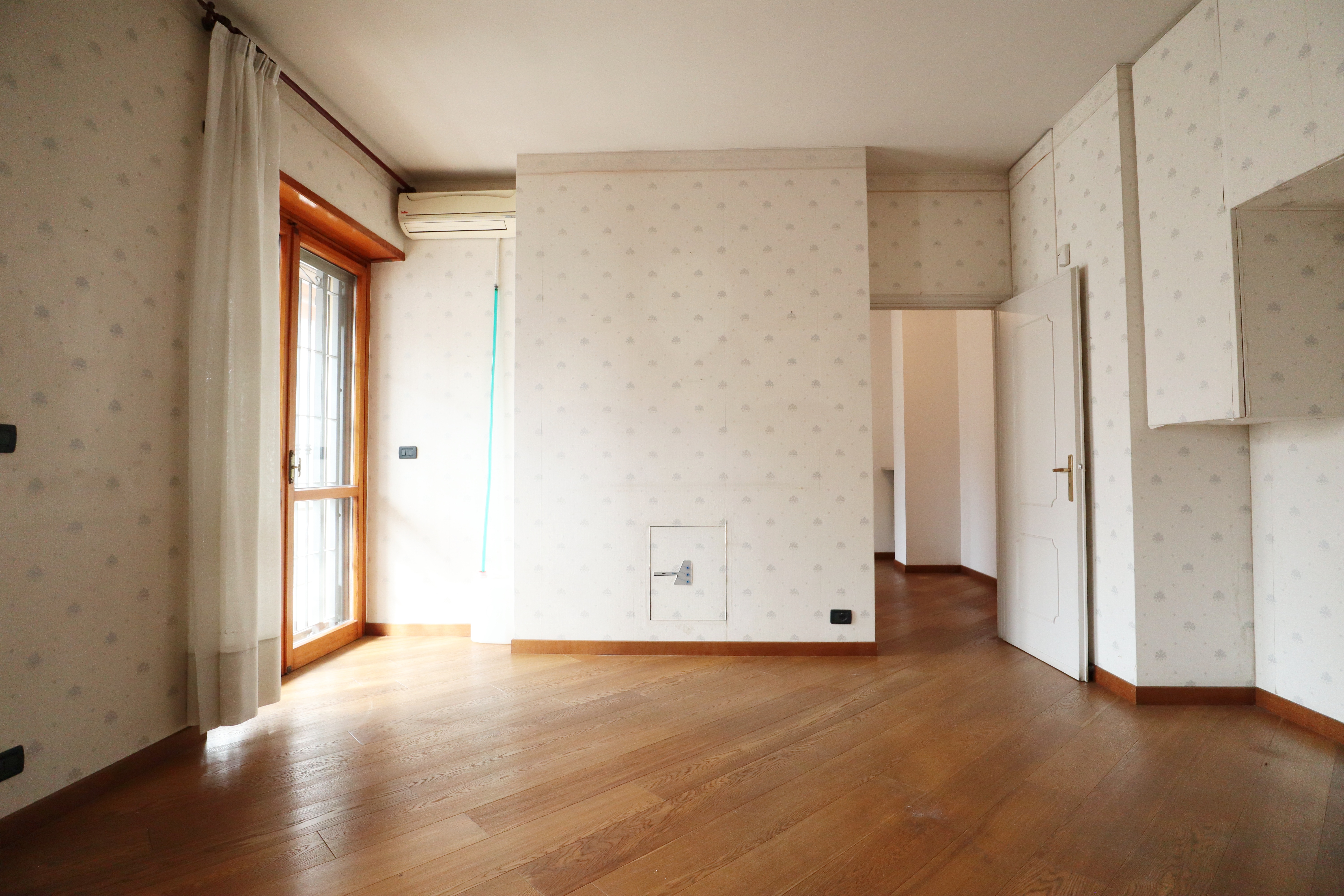 I serramenti sono in legno con doppi vetri, tapparelle elettriche e inferriate. Sui balconi che si affacciano sull’interno cortile sono state installate le tende verande con doppi rulli estate/inverno.