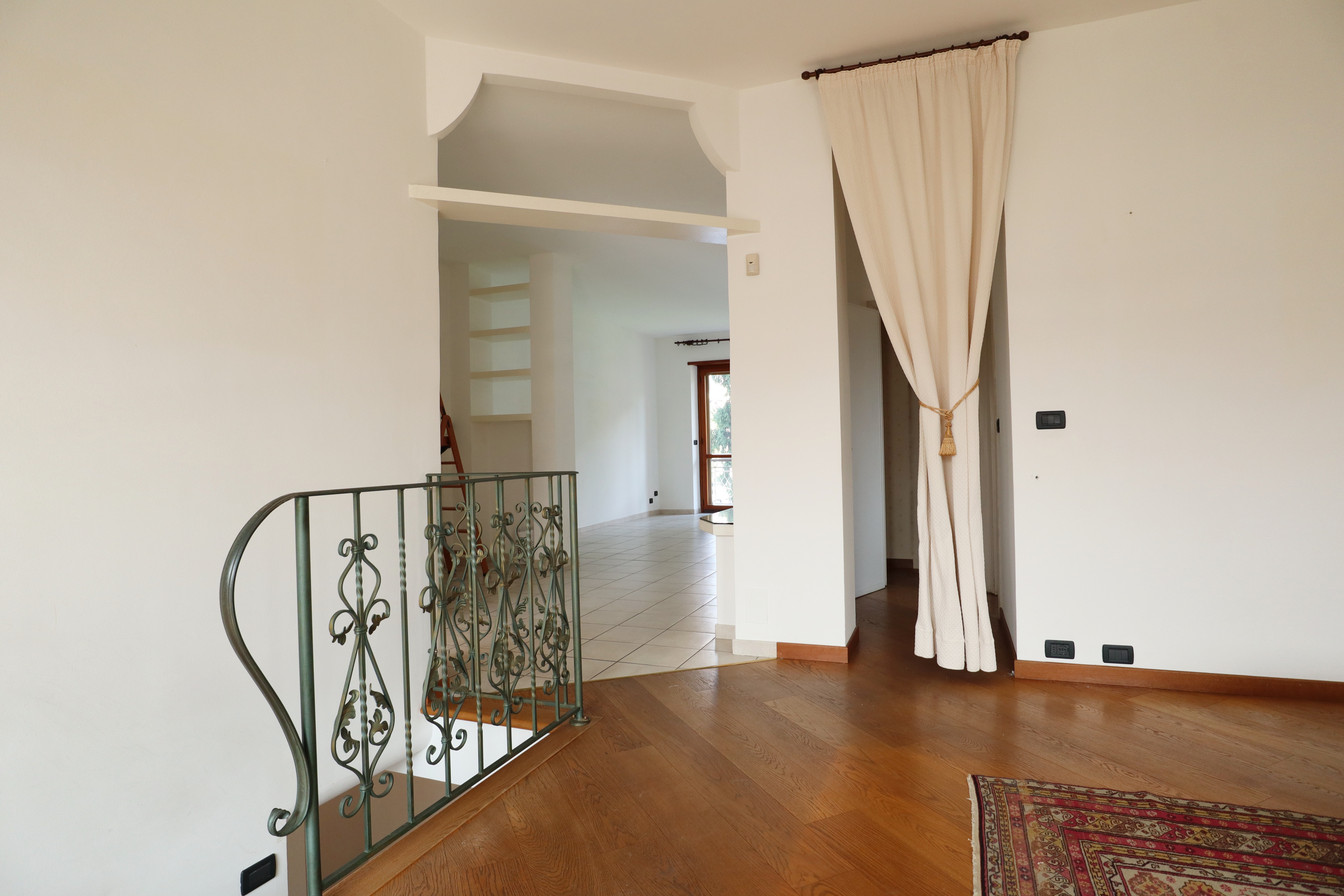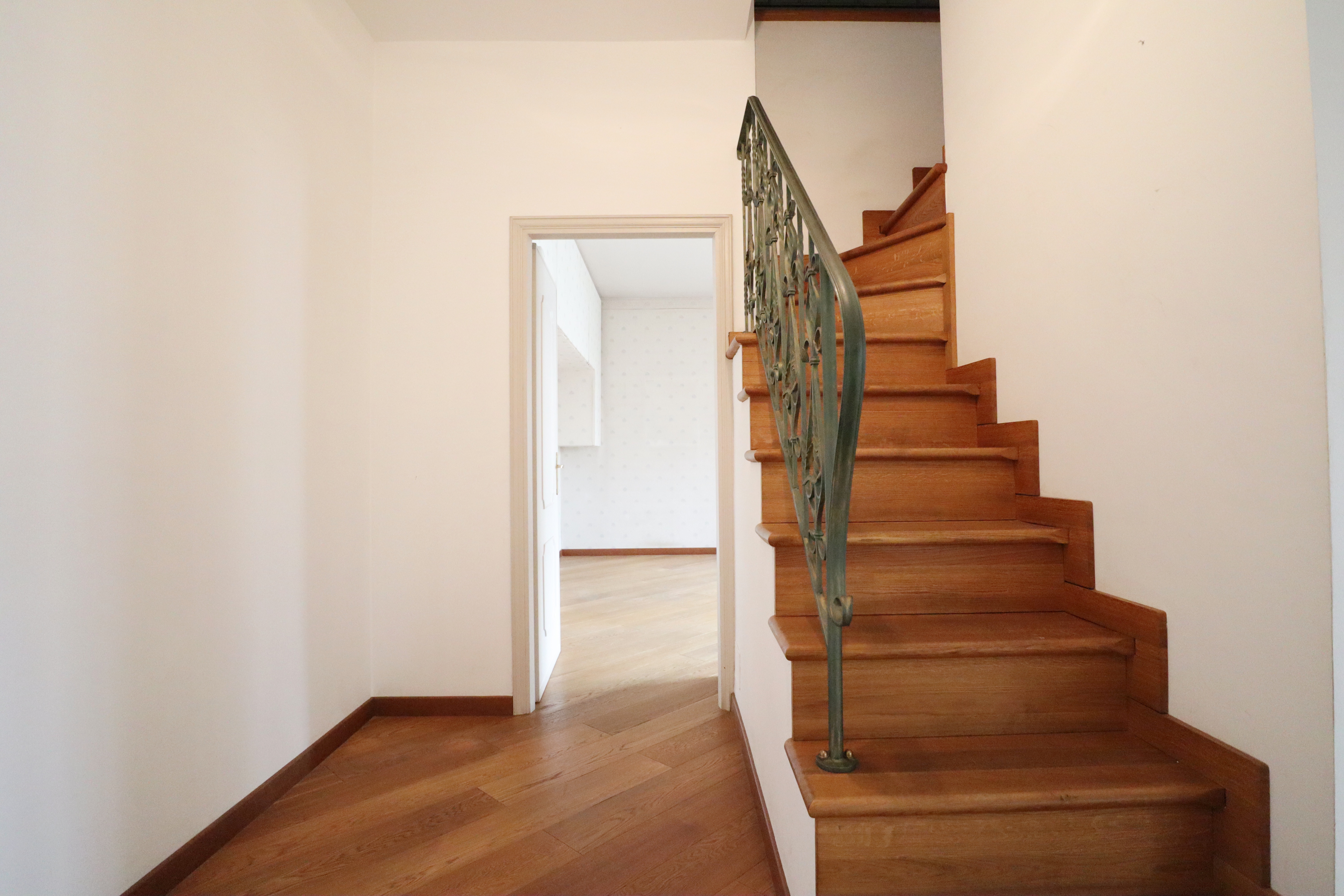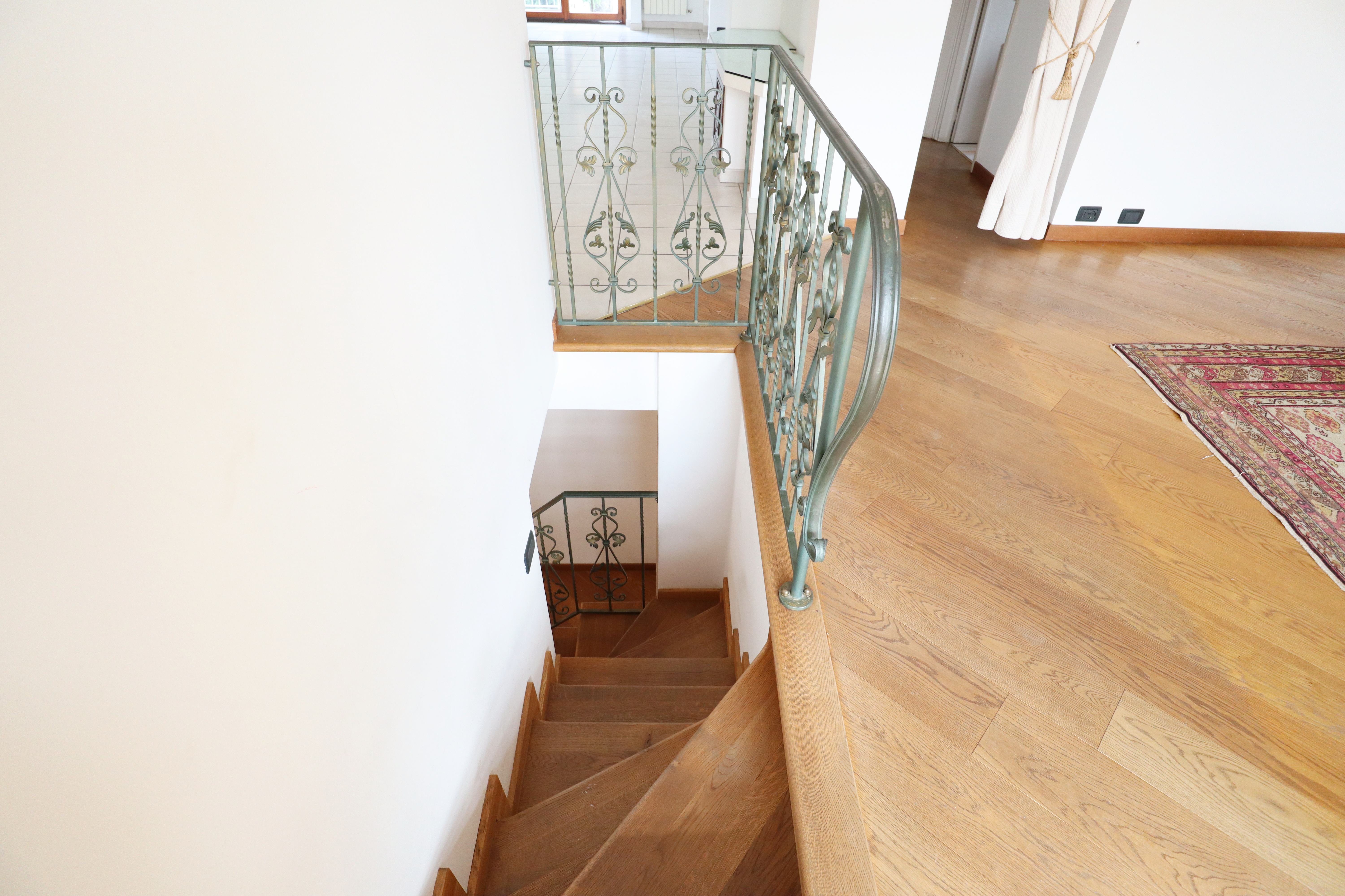 L’immobile si distribuisce su due livelli. Al primo piano troviamo un’ampia zona giorno, composta da sala pranzo, soggiorno, cucina abitabile, disimpegno, ripostiglio, cabina armadi e doppi servizi.