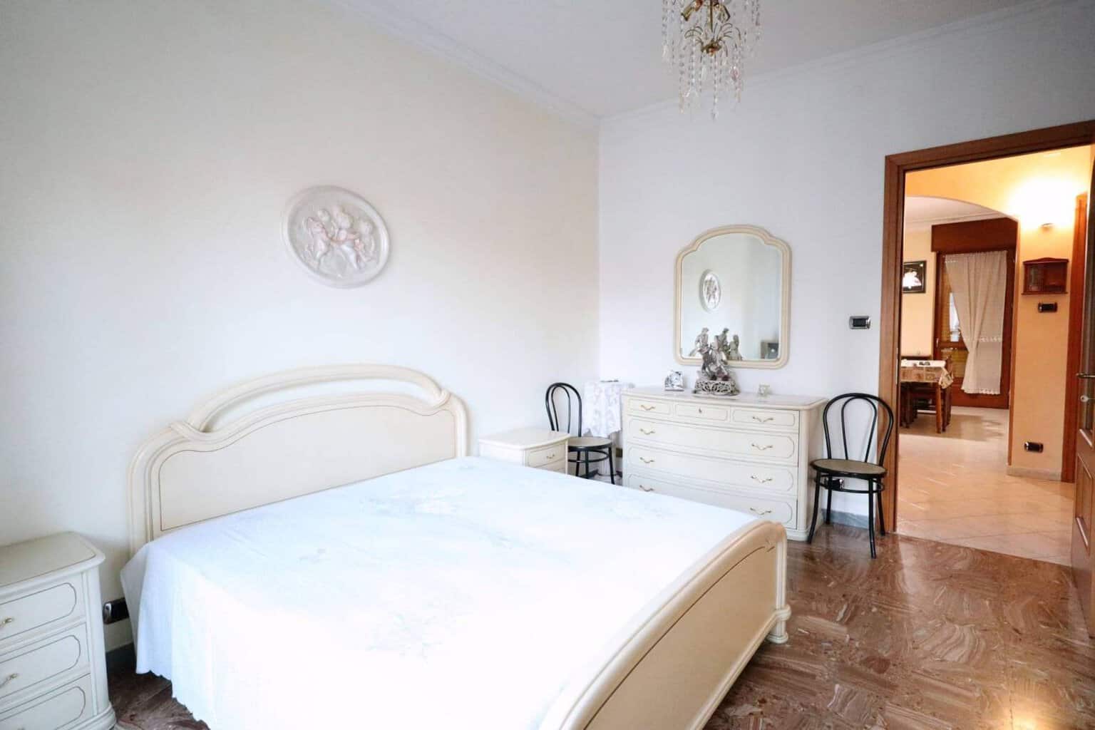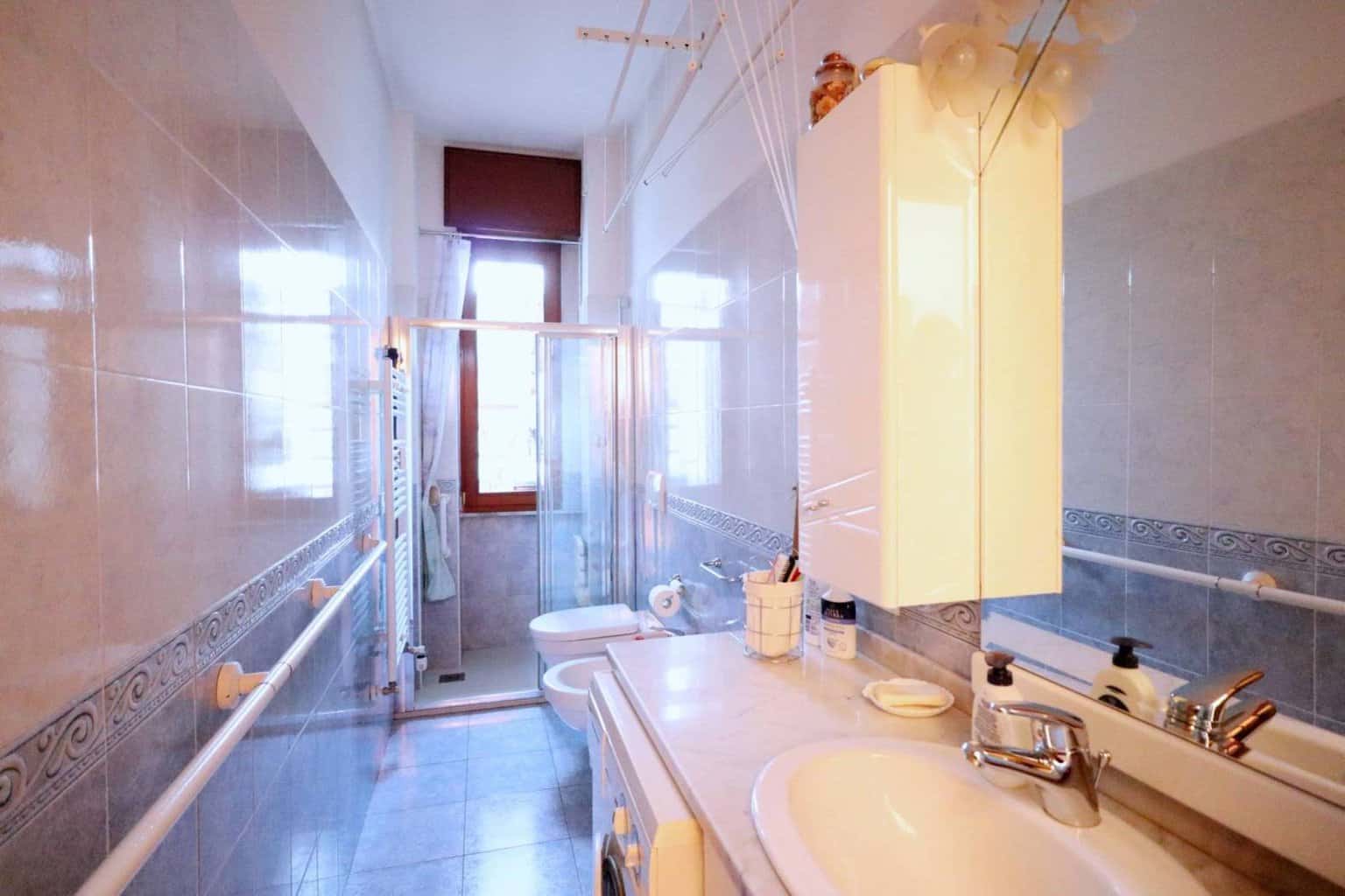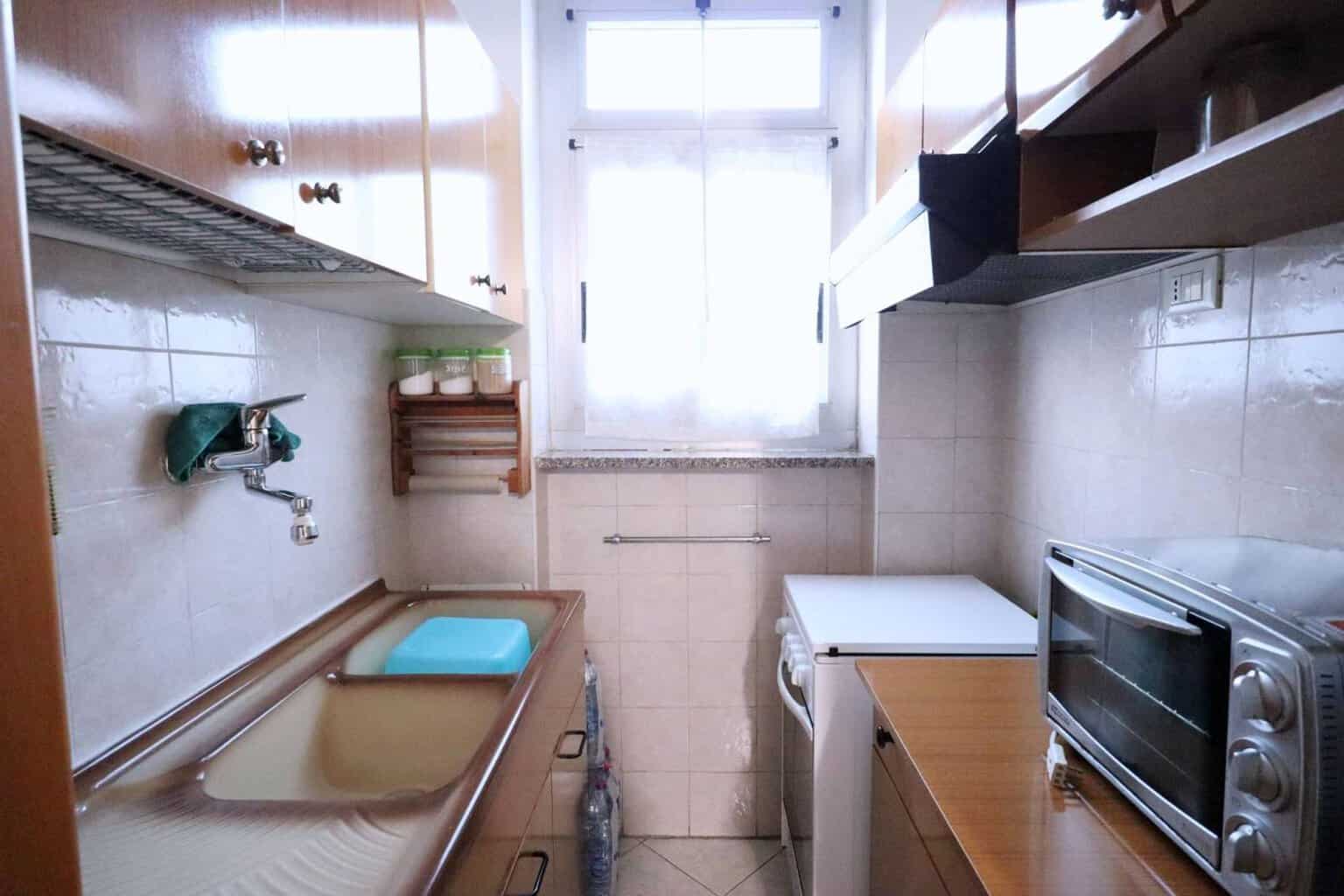 L’immobile è composto da un ampio ingresso che divide la zona giorno dalla zona notte. Nella zona giorno troviamo un tinello separato dal cucinino e un balcone che affaccia sull’interno cortile, nella zona notte una camera da letto matrimoniale con balcone, bagno completo di tutti i sanitari e doccia.