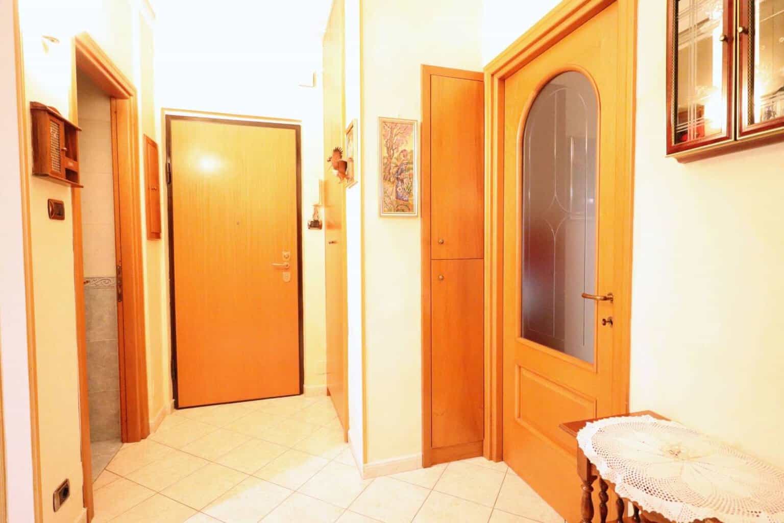 Nell’appartamento sono presenti armadi a muro situati nell’ingresso, gli infissi sono in legno con doppio vetro e tapparelle elettriche. La porta è blindata.